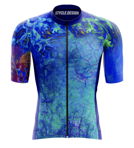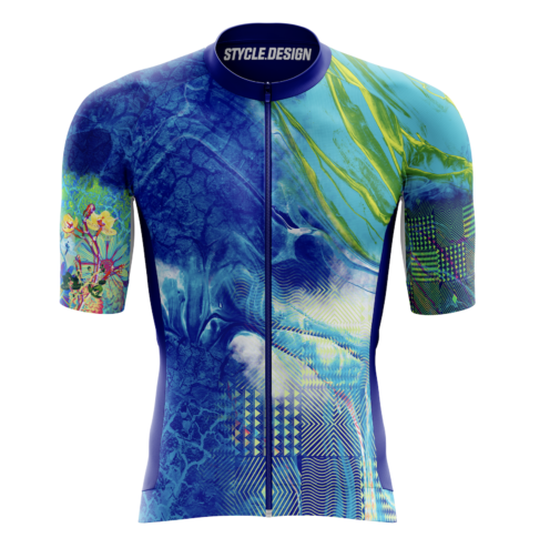 “The main color, blue, is a reference to the flag of Rwanda and their cycling community (their national outfit is blue as well). The darker blue is an edited photo of soil, that’s an obvious one, to represent the mud which is such an integral part of the country’s landscape. Further on you have the ‘Imigongo’. For me, this is the protagonist of the whole design. It’s an old Rwandan art form, and this had to be included. It’s multi-colored to express all the different facets of the country and its people. To top it off, you can find some of their most colorful flowers on the right arm.”