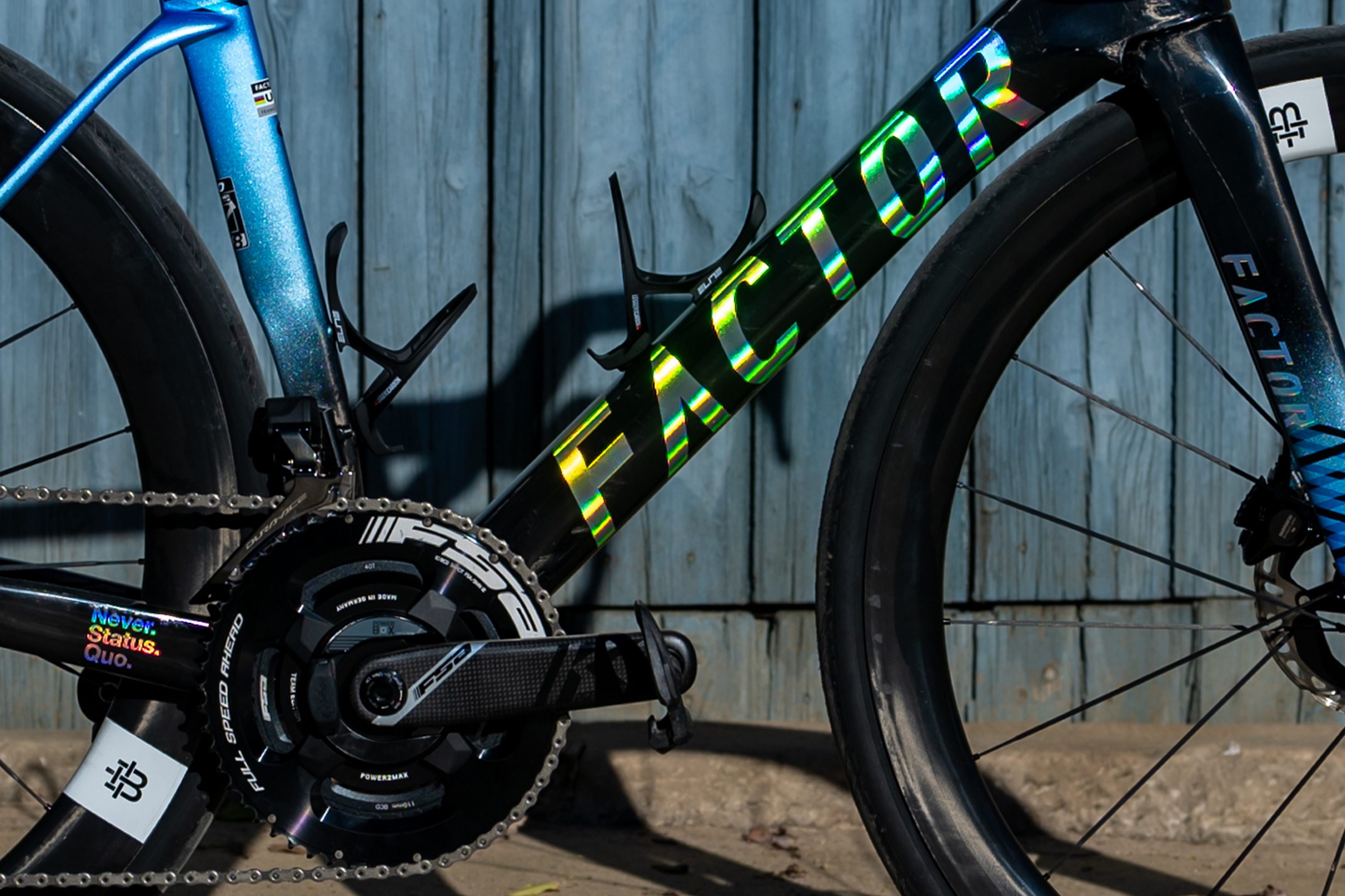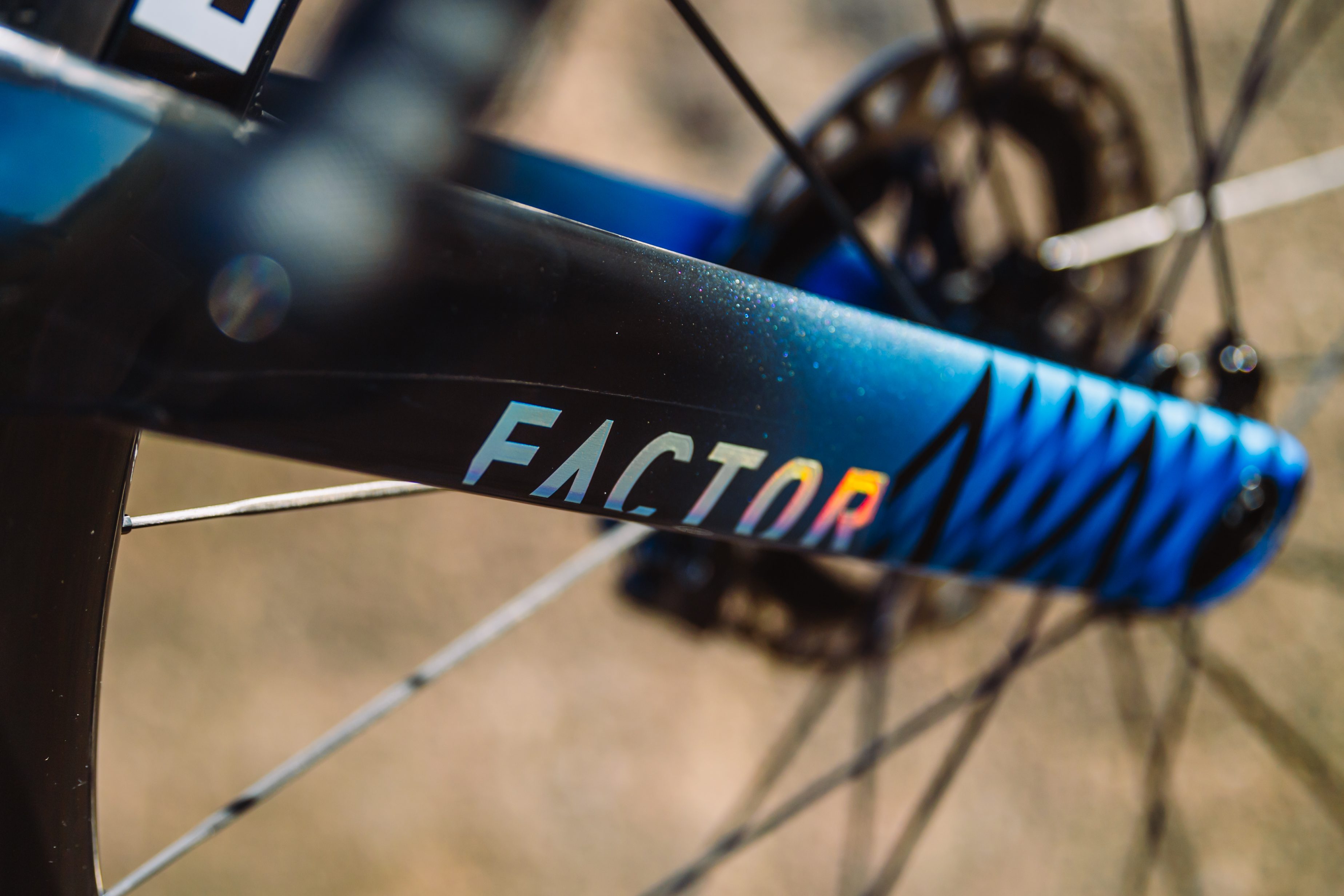 The Icon Blue graphic emphasizes the bike’s focus on speed and performance, using the Factor Type-A graphic to reflect its expertise in carbon fiber layup and commitment to innovation.