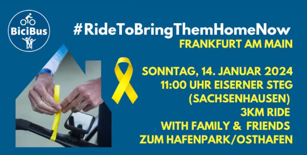 In addition to the planned events taking place across four continents, cyclists everywhere are being encouraged to ride on Sunday with yellow ribbons tied to their bikes, and to upload photos of their rides to social media with the hashtag #RideToBringThemHomeNow.