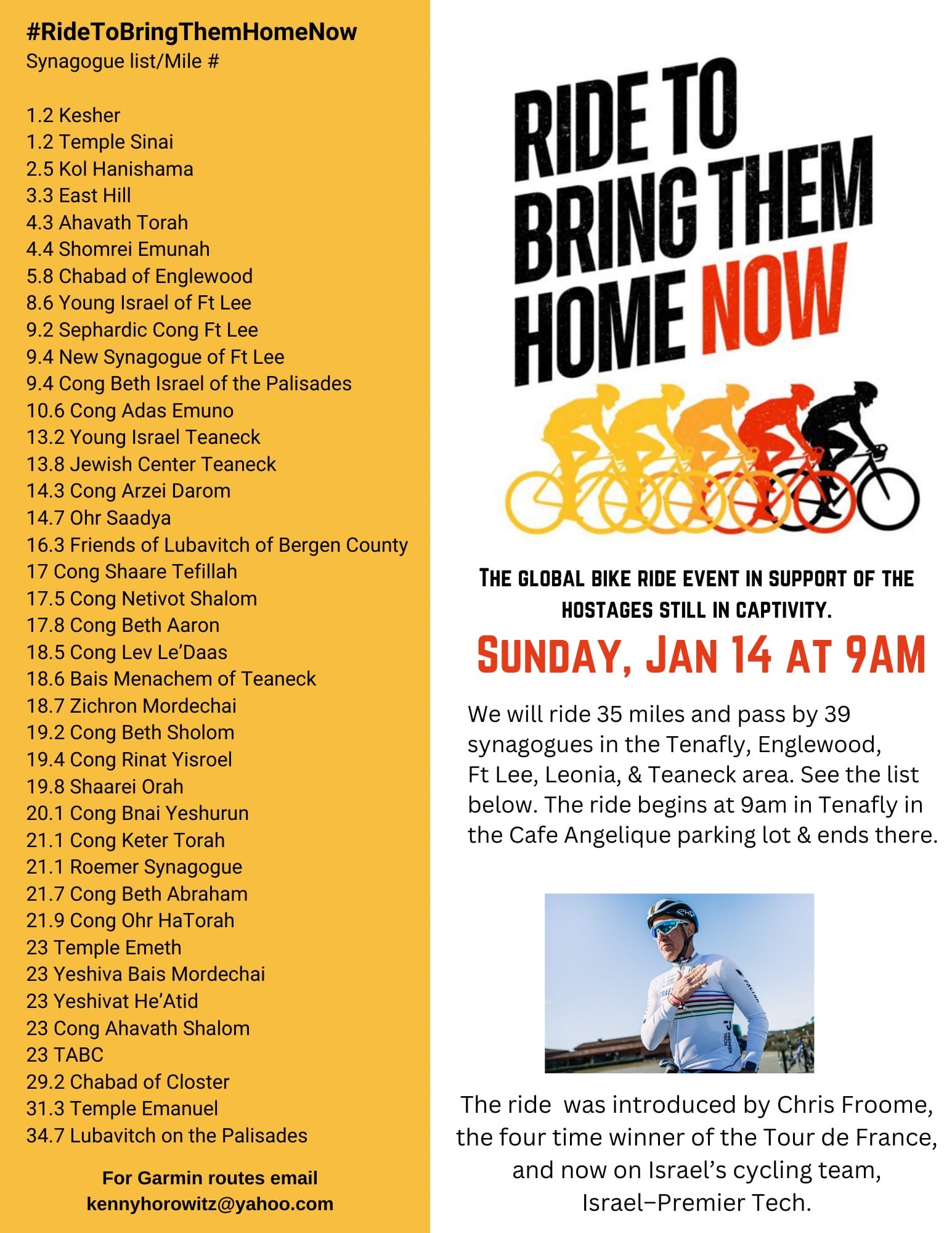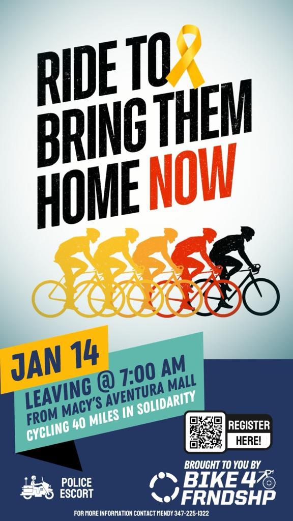 Momentum is growing for the mass global solidarity cycling event being held on Sunday (14 January) to mark the 100th day since the 7 October attacks and the kidnapping of hundreds of people to Gaza.