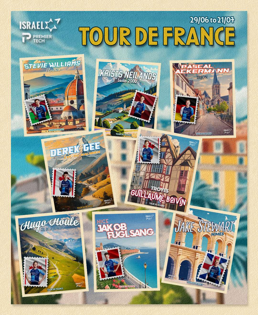 He says: “I am pleased with our roster for this year’s Tour. It was one of the toughest team selections we have ever had to make which speaks of the depth of our rider roster. Ultimately, our performance team was unanimous in making these selections, knowing we wanted a team geared towards hunting for individual stages, rather than a high placing on GC. For the third consecutive year, our roster will boast three Canadians, cementing our position as both Israel’s and Canada’s home programs. I’m particularly excited for our first time Tour participants, representing half of the group selected. They will be hungry to make it count.”
