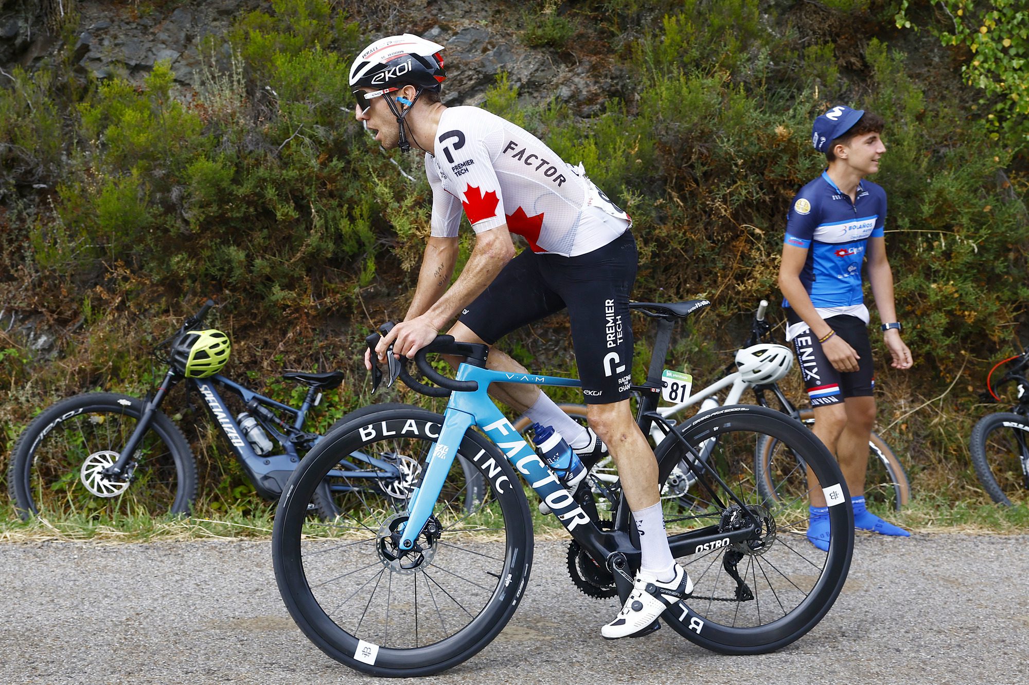 The Canadian road race champion, who helped initiate a 24-rider lead group alongside teammate Dylan Teuns, went solo 4.6 kilometers from the top of the arduous climb and never looked like being caught.