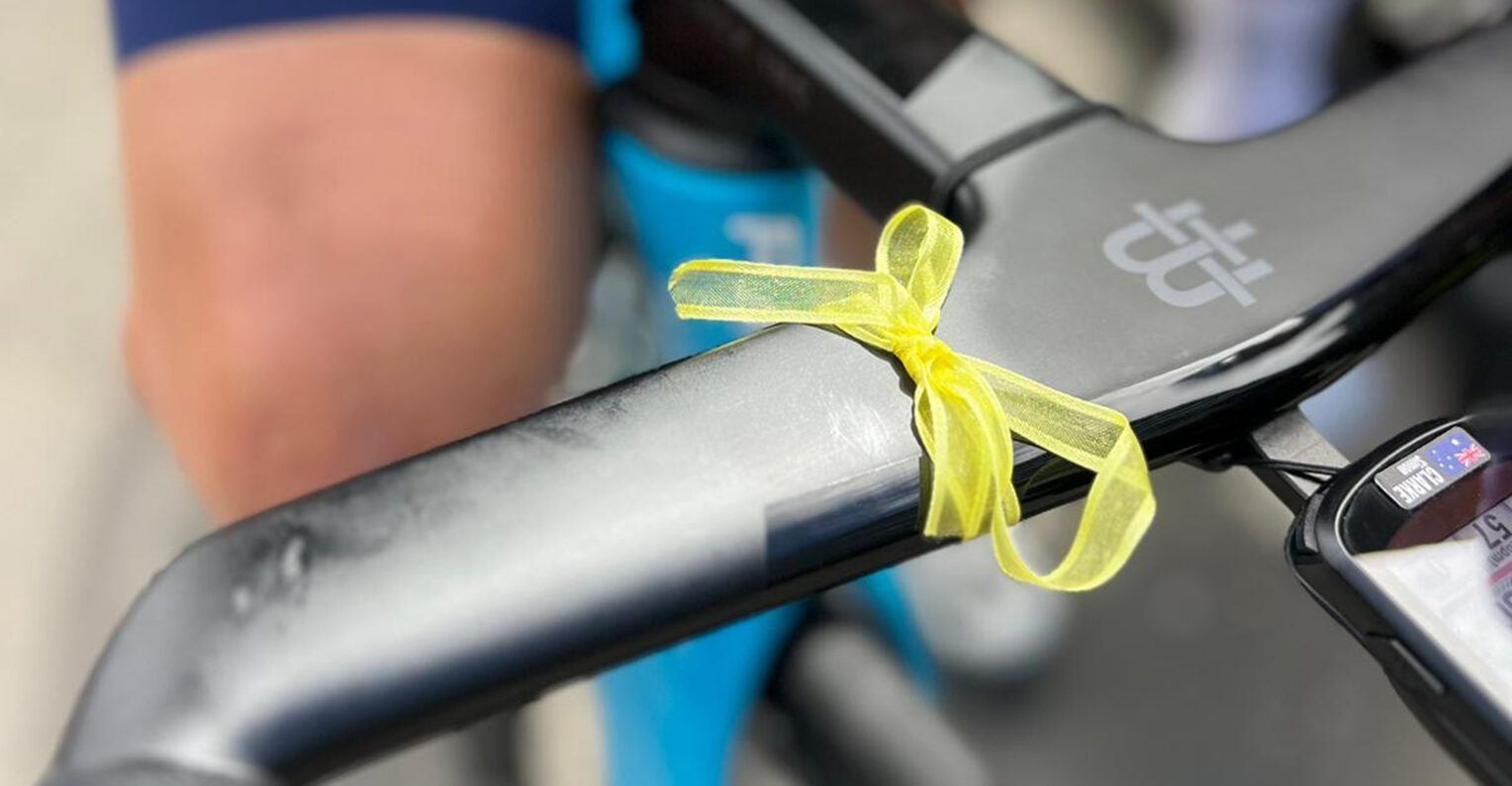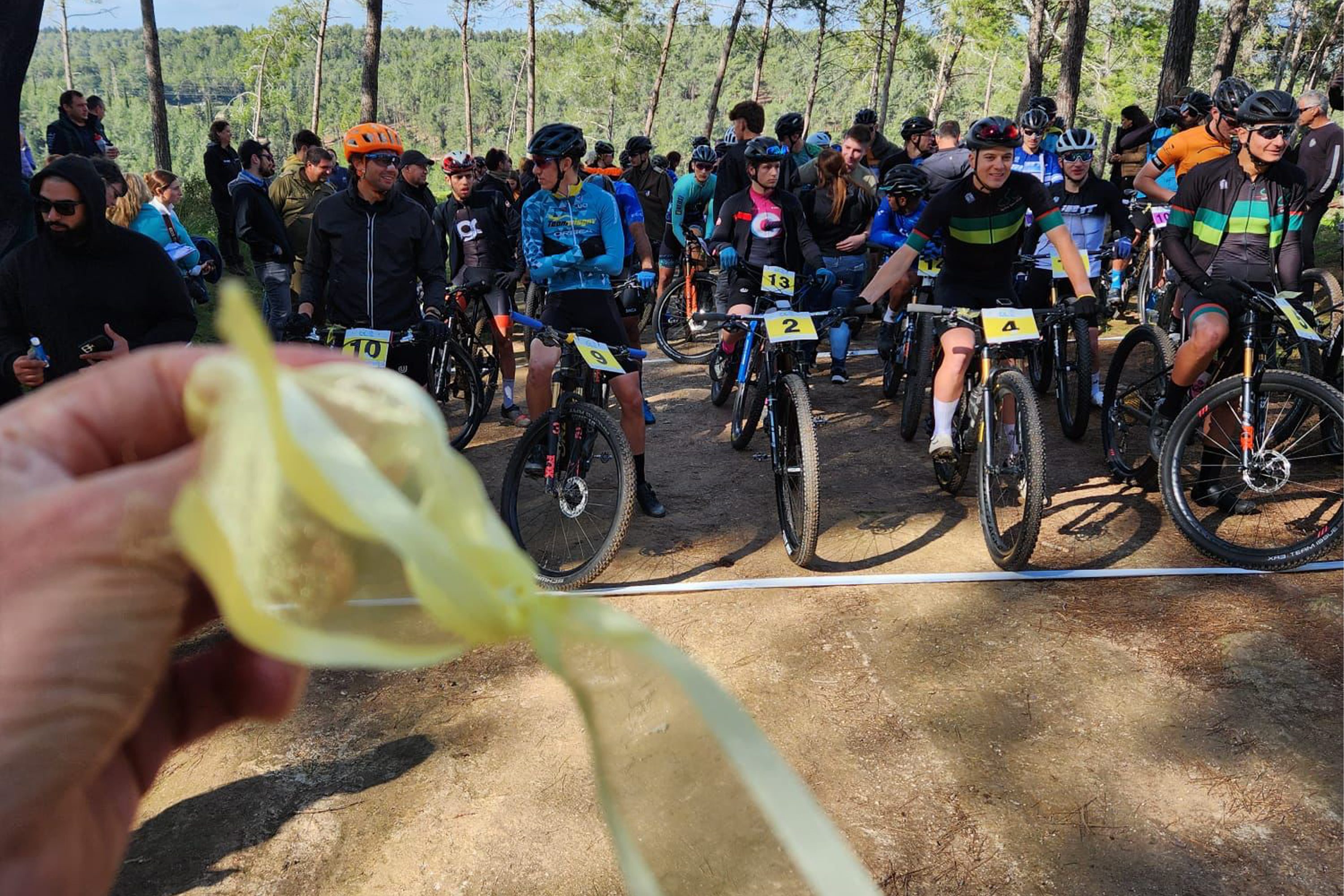 Yellow ribbons on show at a round of the Israeli MTB Cup