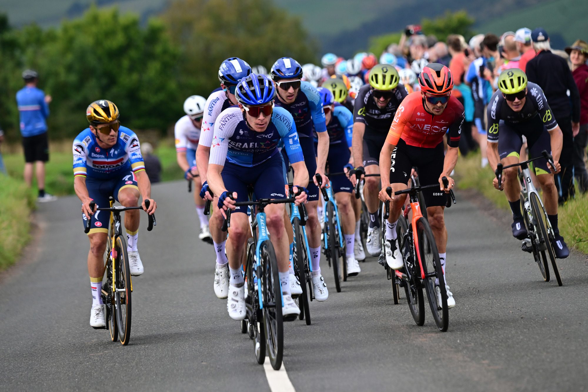 Although the stage culminated in the much-anticipated sprint, the action leading up to the finish was centered around the race’s GC favorites. Stevie Williams covered a multi-team move on the penultimate climb of Scott’s View, before Nick Schultz, Joe Blackmore, and Stewart also outlined their form by following accelerations from the likes of Remco Evenepoel, Julian Alaphilippe, and Tom Pidcock.
